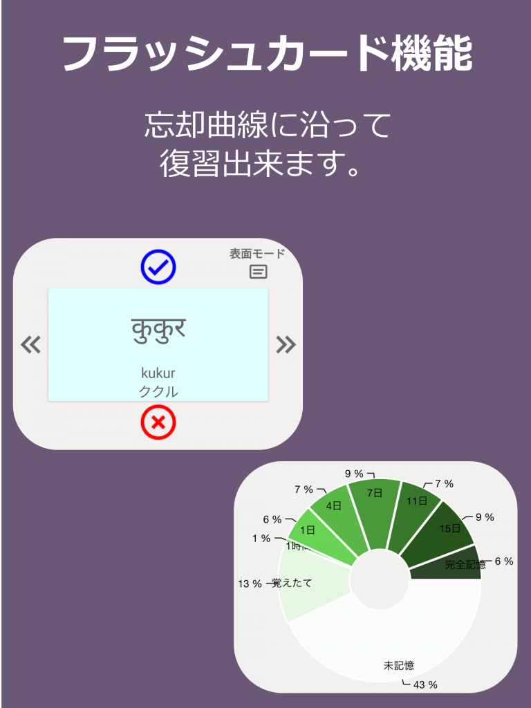 「忘却曲線に基づく学習モード」機能を搭載、効率的で効果的な復習方法に拘った単語帳アプリ『単語帳F』Android 版をアップデート スマートフォン向けアプリ開発を行う CUTBOSS(大阪市中央区、代表:CUTBOSS)は、効率的で効果的な復習方法に拘った単語帳アプリ『単語帳F』Android 版の最新版 Ver暗記カード FlashCard 単語帳を自分で作る&共有 単語帳はパソコンで作成したものをアプリでインポートすることもできるため、スマートフォンよりも効率的に編集作業が行えます。 「エビングハウスの忘却曲線」理論に基づき、復習を重視した効率的な 忘却曲線に合わせた効率的な反復復習で記憶の定着に役立ちます。 筆記・ディクテーションなど様々な形式の暗記テスト(クイズ)で学習をサポートします。 主な管理機能 フォルダーで単語カードを整理勉強や仕事に!オススメタイマーアプリ(Android,iPhone) 暗記勉強がはかどる!無